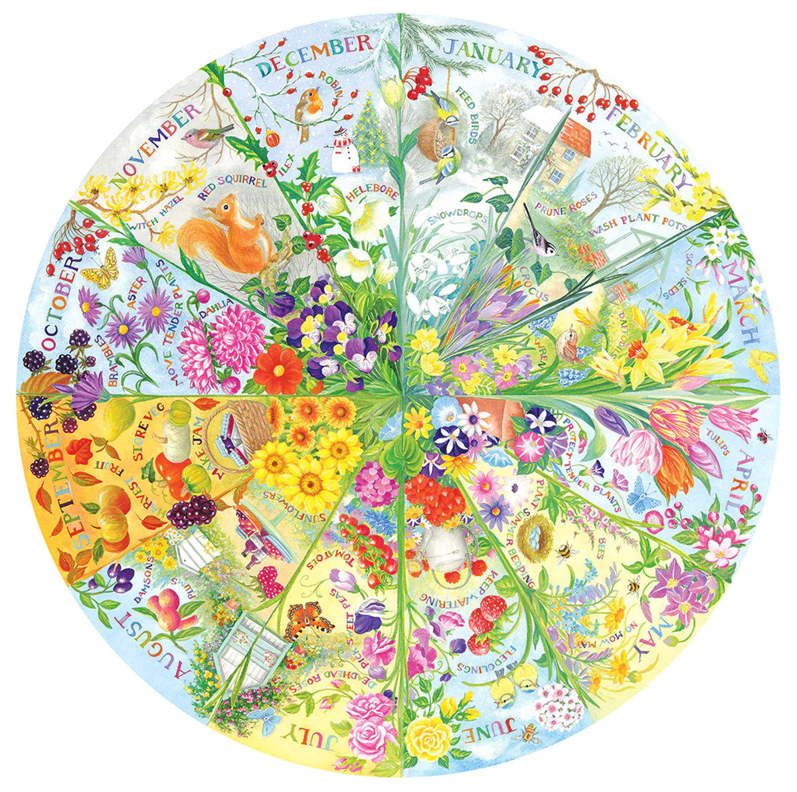 Puzzle Gibsons 500 elementów - Rok w ogrodzie (okrągłe)