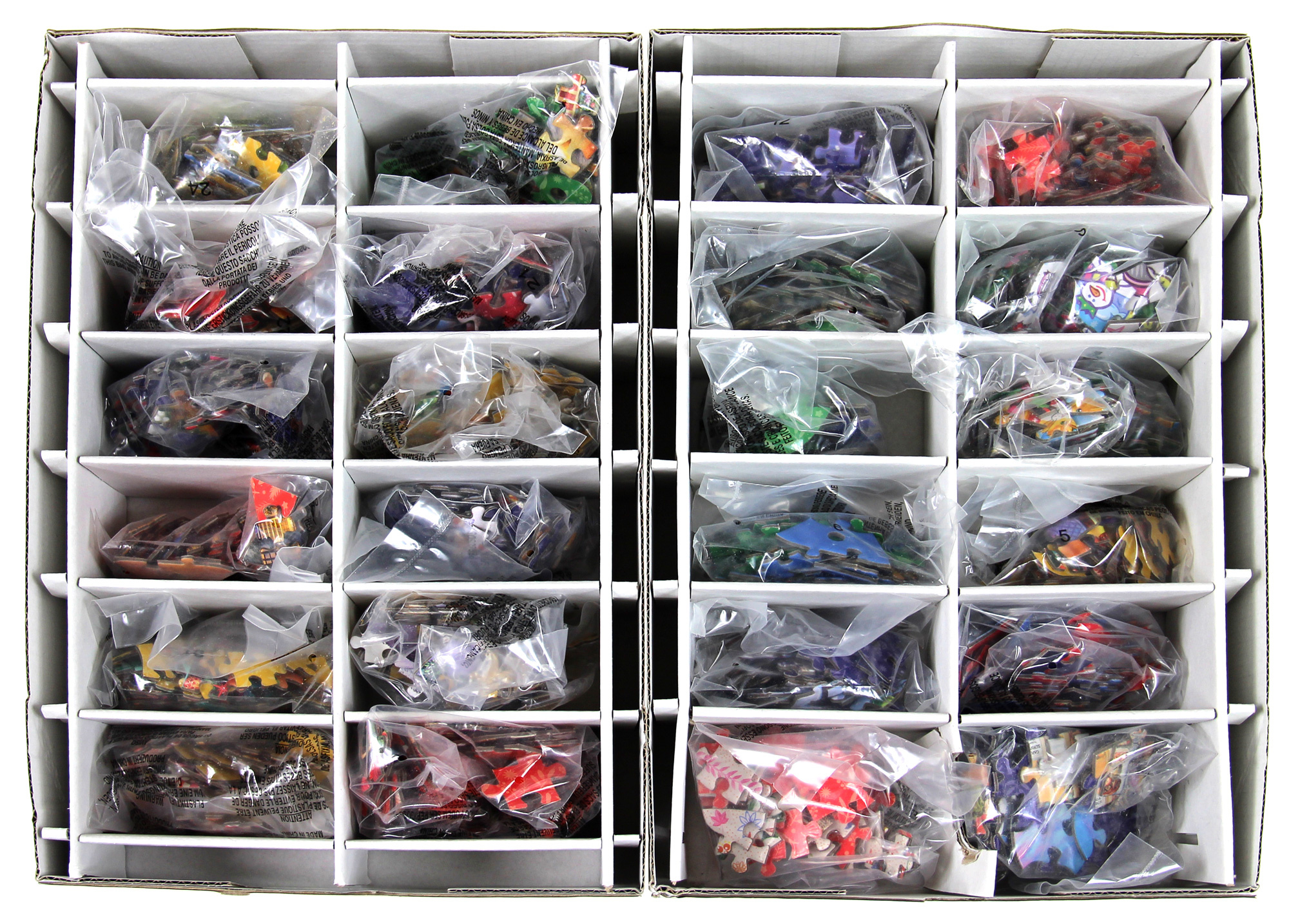Obrazki na puzzlach przedstawiają świąteczne scenki, w różnych, nieraz bardzo niezwykłych miejscach. Wszystkie wzory są pokazane na spodniej stronie obwoluty. Puzzle, zależnie od kształtu, składają się od 42 do 61 elementów (łącznie jest 1236 elementów).