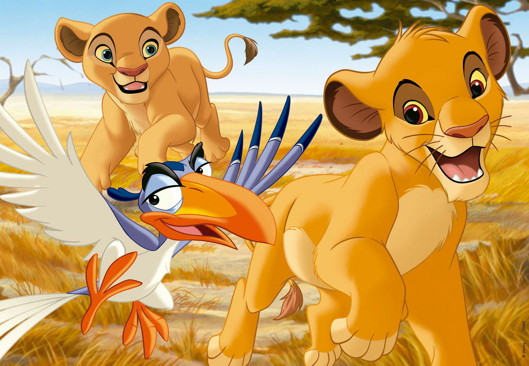 - Puzzle dla dzieci z motywem przedstawiającym bohaterów bajki Król Lew.