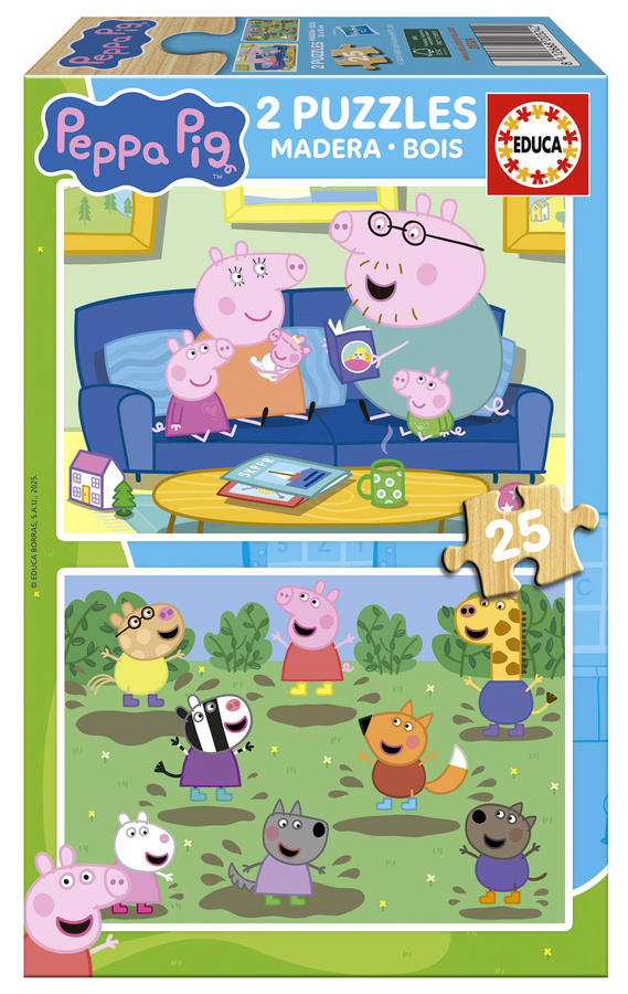 Puzzle Educa 2 x 25 elementów - Świnka Peppa (drewniane)