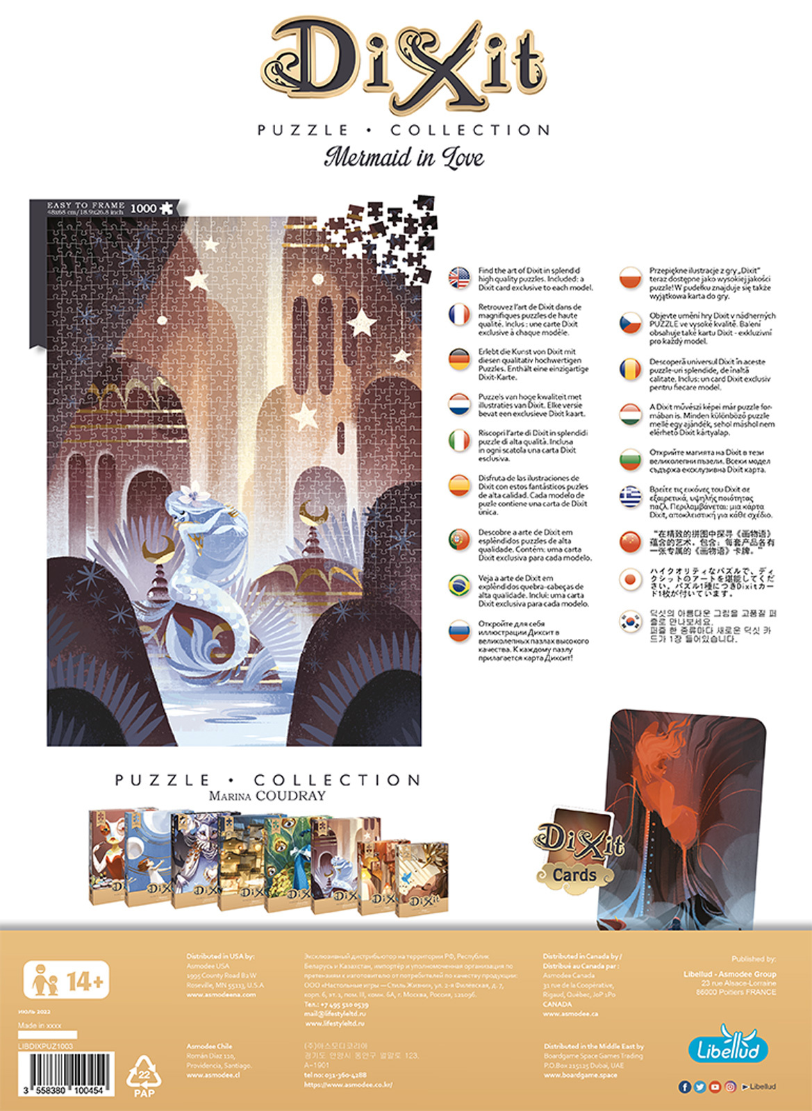 Wkrocz do świata jak ze snu i odkryj na nowo najpopularniejsze obrazy, pobudzające wyobraźnię graczy na całym świecie. W pudełku oprócz puzzli znajdziesz unikatową kartę do gry Dixit, niedostępną w żadnym innym zestawie.
